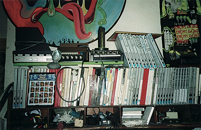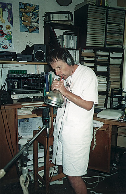 "Tall Dwarfs has always been about collaged musical elements wedded to good tunes, or, at the very least, sorta coherent musical ideas, so that's always been my main area of experimentation. The solo albums tend to be much more 'songy'. Fortunately for my more adventurous listeners and painfully for those more timid, my love of noise and 'animation for the ears', as someone more famous than myself once described musique concrete, has also reared its lovely head on occasions on my solo records. I try to keep these pieces separate from the songs but some people haven't figured out how to navigate the CD medium and plough through the bastards every time they listen to the album! Then they complain about their presence! People can be so foolish. I just love splicing tape, I love recording backwards and at the wrong speeds, all the good old mid 20th century tricks. I have fun mapping something out in my mind, creating a big 3D overview of some sonic landscape and getting it down on tape with a minimum of editing. "Ndidi" on the YES!! album [from 1997] is an example of the latter process. It's based on eight discrete 4-track loops I'd done with a separate idea in mind. It was gonna be three distinct movements, the first a very slow crescendo, the second an equally lengthy diminuedo, and the last a smorgasborg of random shit. I mixed the first but it was really a bit dull so a mutation of the smorgasbord idea became a recorded reality a few years later on. I still have every loop I've ever made hanging on various hooks and nails throughout the house waiting to osmose together into my equivalent of a Dream Syndicate lifework. One day I'll do a total noise/collage thing and release it under an assumed name."